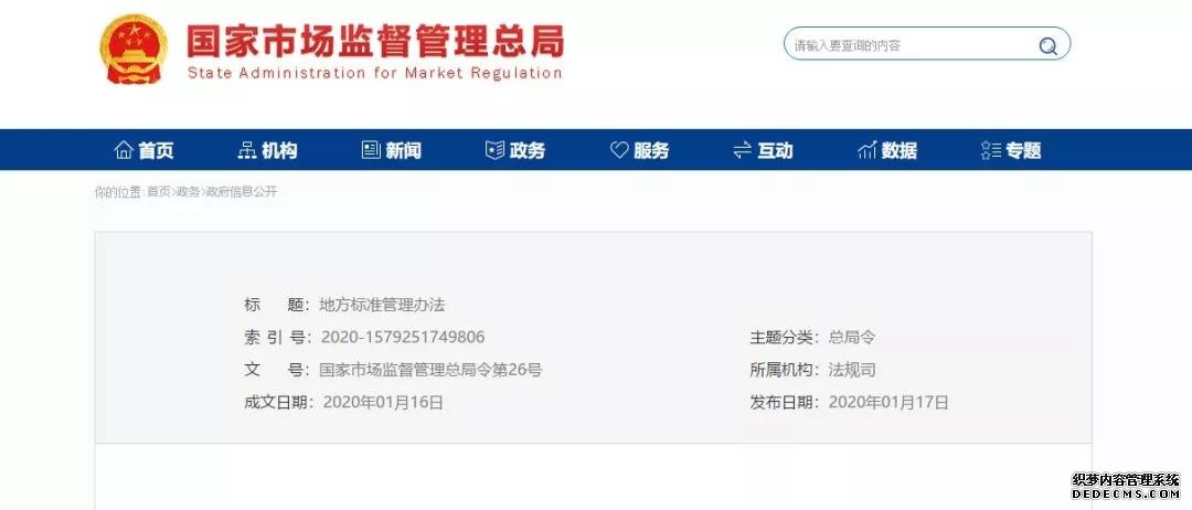 重磅!國家市場監(jiān)督管理總局令第26號《地方標準