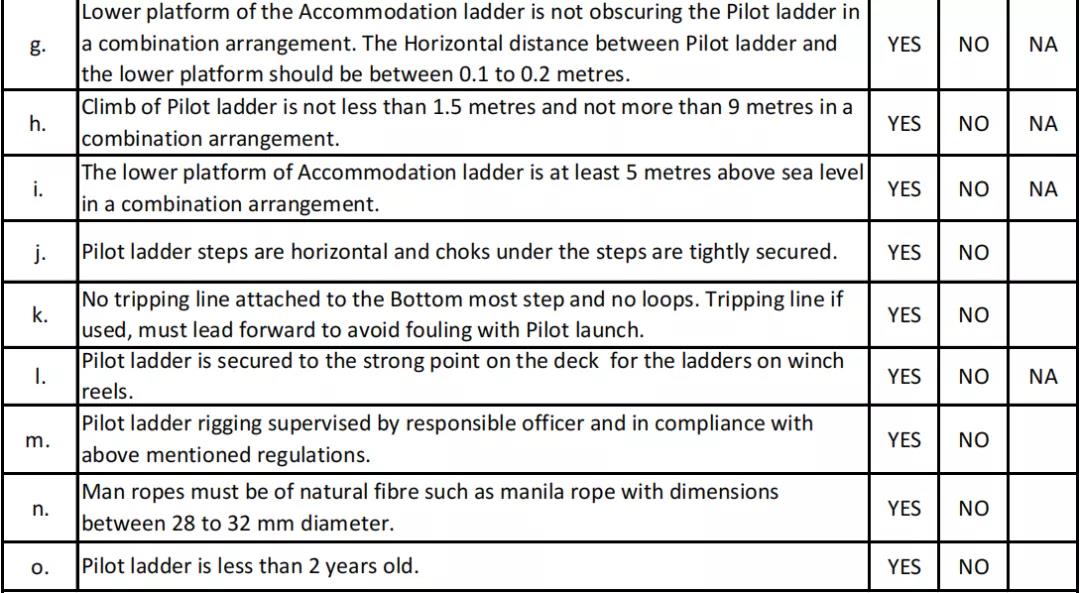 ·所有引航梯的使用年限必須小于2 年。引航員/訪問港口的人員,可能會要求查看引航梯建造證書。