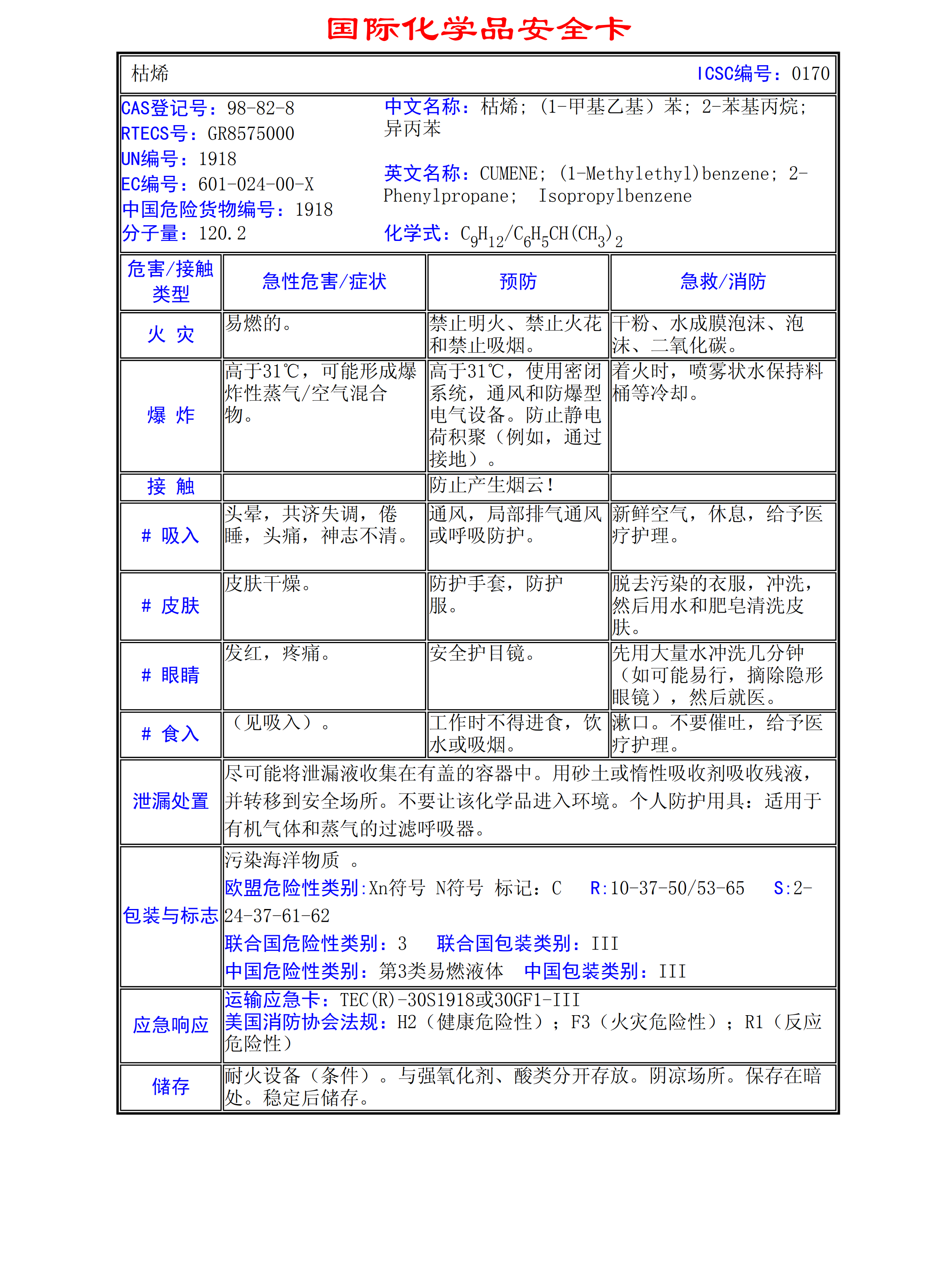 枯烯MSDS