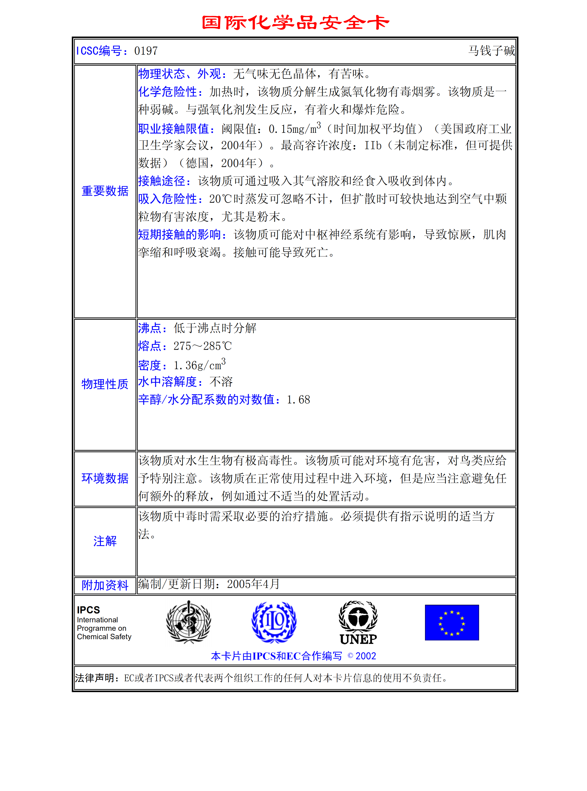馬餞子堿MSDS