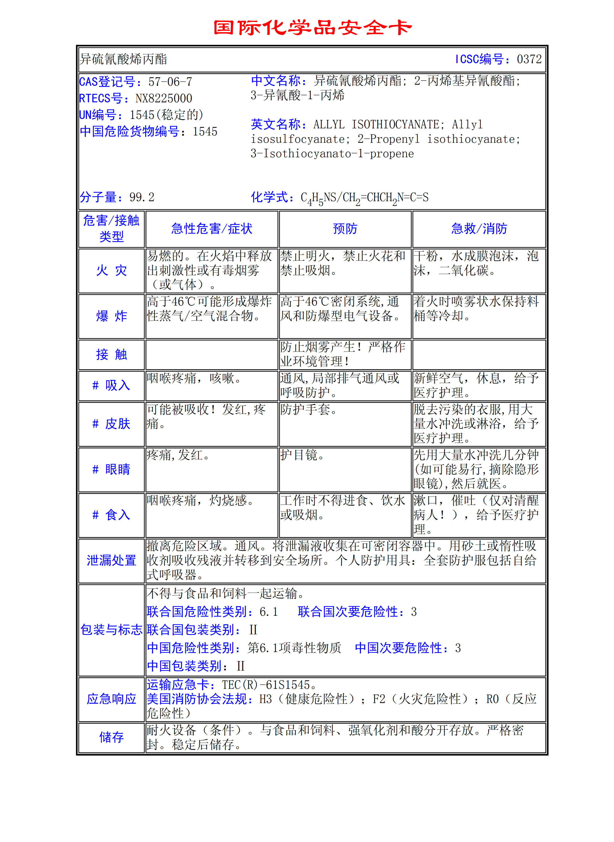 異硫氰酸烯丙酯MSDS