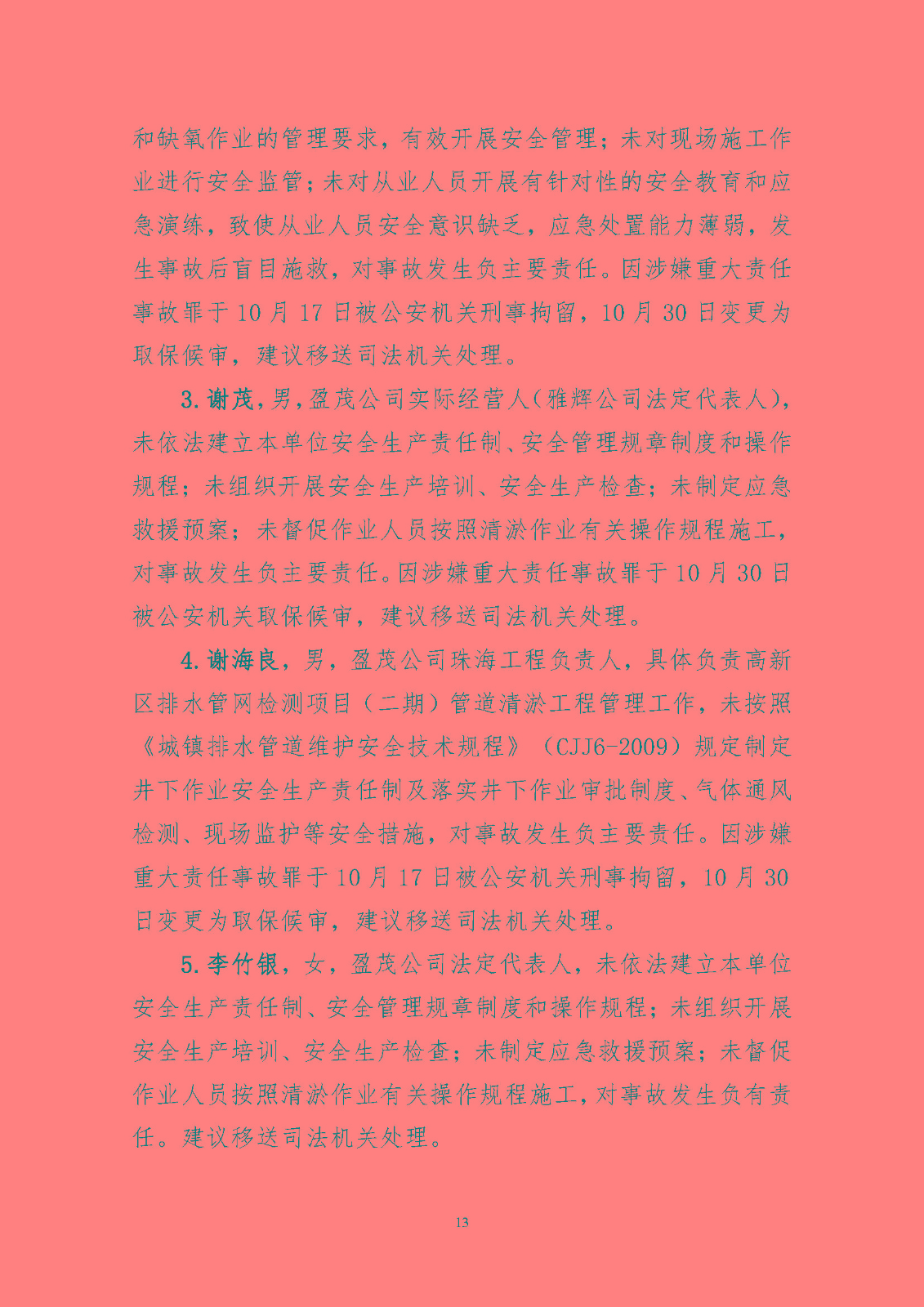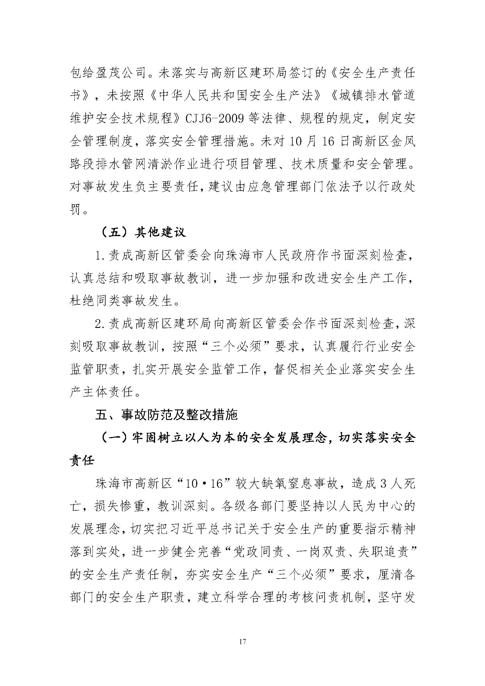 珠海市高新區(qū)“10·16”較大缺氧窒息事故調(diào)查報告