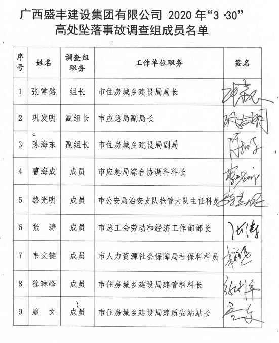 廣西盛豐建設(shè)集團有限公司中央商務區(qū)·翡翠園15號樓工程2020年“3·30”高處墜落事故調(diào)查