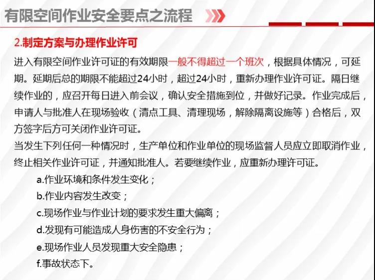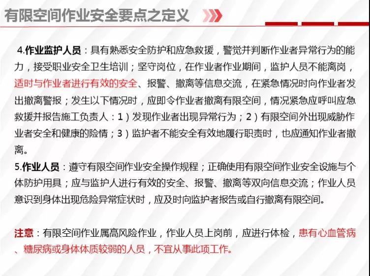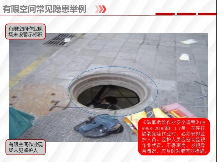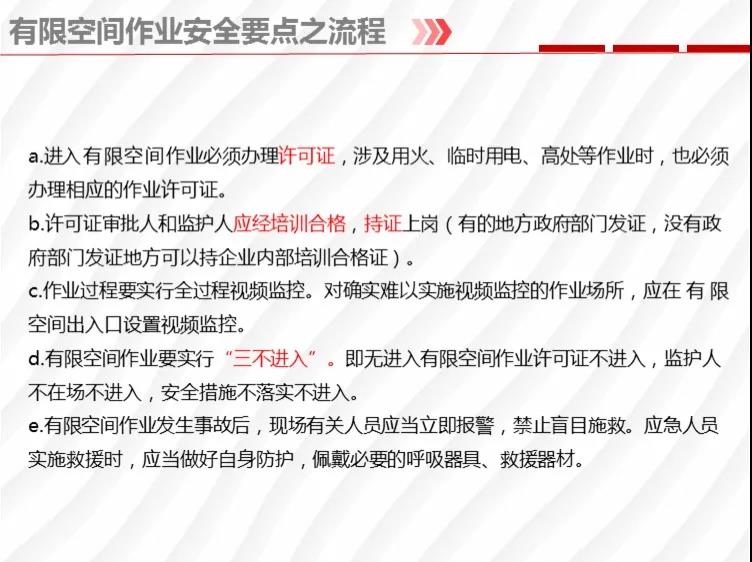 二要嚴格落實有限空間作業(yè)安全管理規(guī)定。各地各有關(guān)部門要督促企業(yè)嚴格執(zhí)行《安徽省有限空間作業(yè)安全管理與監(jiān)督暫行規(guī)定》,凡涉及到有限空間作業(yè),做到“五個必須”,即必須嚴格實行作業(yè)審批制度;必須做到“先通風(fēng)、再檢測、后作業(yè)”;必須配備個人防中毒窒息等防護裝備,設(shè)置安全警示標識;必須對作業(yè)人員進行安全培訓(xùn);必須制定應(yīng)急措施,現(xiàn)場配備應(yīng)急裝備,嚴禁盲目施救。