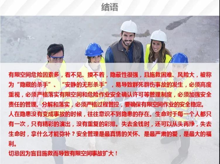 事故暴露出企業(yè)和從業(yè)人員對有限空間風(fēng)險辨識不清、試生產(chǎn)過程中安全防范措施不到位、盲目施救導(dǎo)致傷亡擴大等問題,也暴露出監(jiān)督管理存在薄弱環(huán)節(jié)等問題。省政府領(lǐng)導(dǎo)高度重視,王清憲省長、鄧向陽常務(wù)副省長、張紅文副省長先后作出批示,要求妥處善后,查清原因,嚴格追責(zé)。為深刻吸取事故教訓(xùn),堅決遏制類似事故再次發(fā)生,現(xiàn)提出以下工作要求,請結(jié)合本地區(qū)本部門實際認真貫徹執(zhí)行。