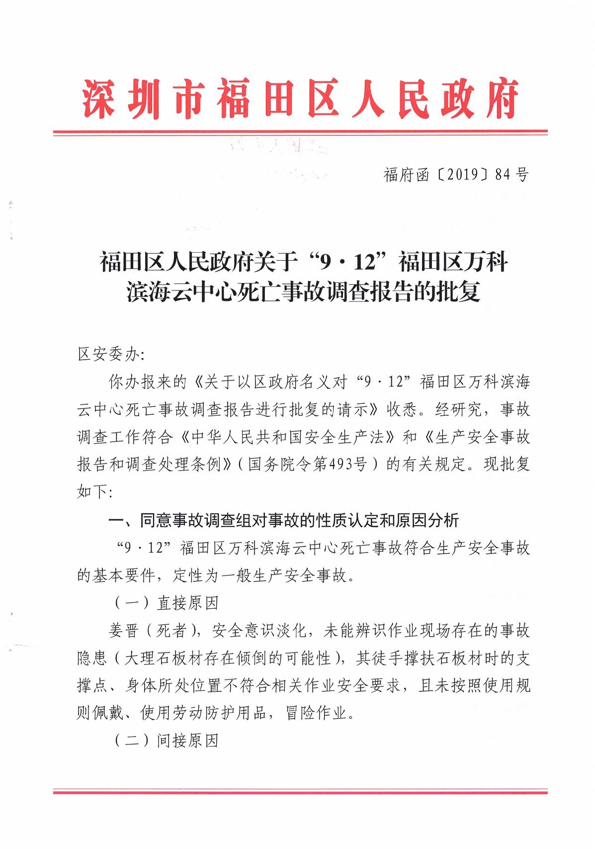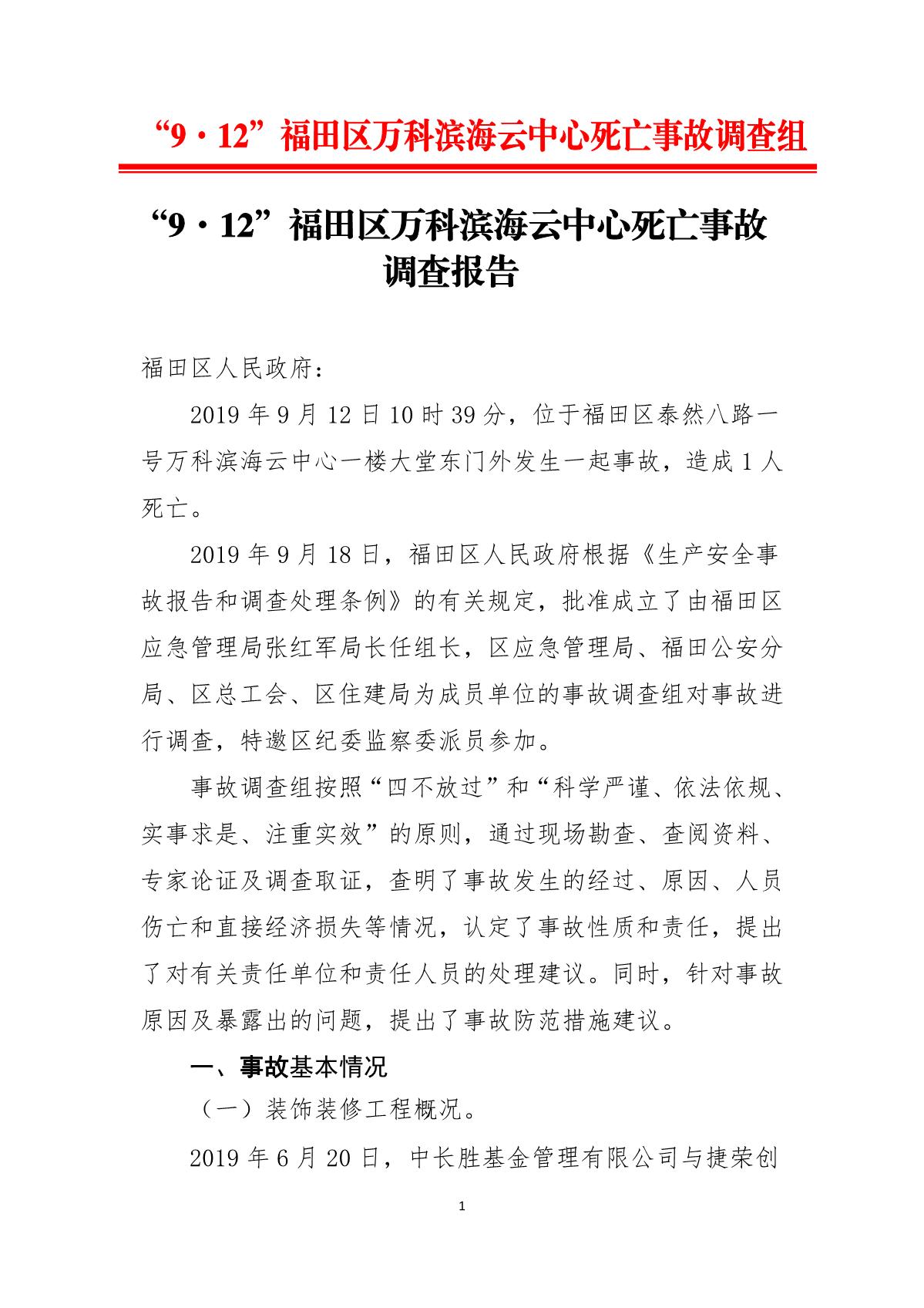 “9.12”福田區(qū)萬科濱海云中心死亡事故調(diào)查報(bào)告