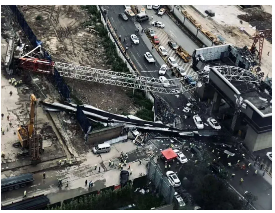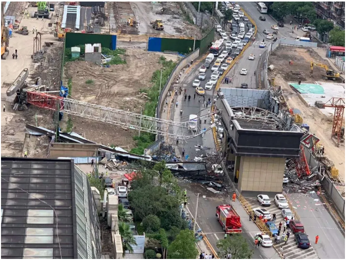 突發(fā)!起吊鋼筋籠時,工地履帶吊突然側(cè)翻砸中行駛車輛