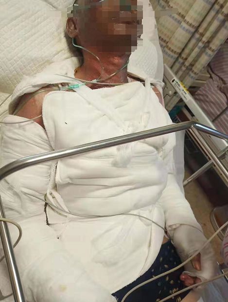 事故發(fā)生后,老吳被緊急送往醫(yī)院接受治療,醫(yī)生確認老吳全身多處燒傷,面部尤其嚴(yán)重,部分皮膚甚至呈焦黑色。