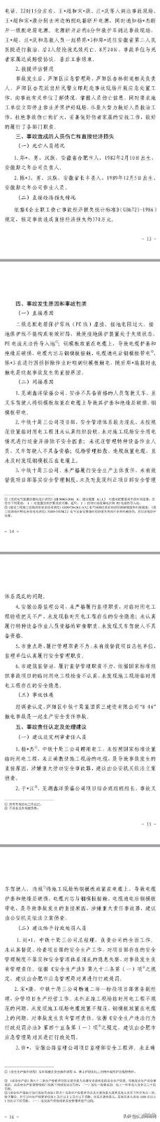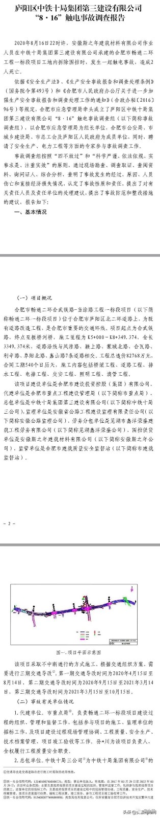 12月2日,合肥應急管理局在其官網發(fā)布廬陽區(qū)中鐵十局集團第三建設有限公司 “816”觸電事故調查報告。