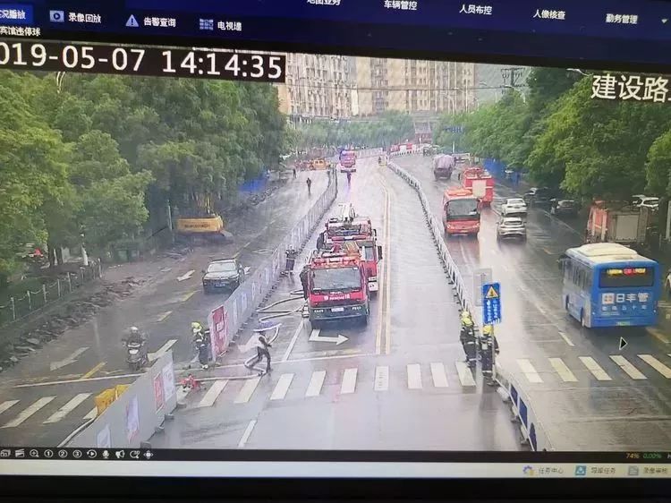 支隊指揮中心接警后,迅速啟動市政設(shè)施故障事件應(yīng)急預(yù)案并報告支隊領(lǐng)導(dǎo)。領(lǐng)導(dǎo)指揮崗迅速通知轄區(qū)中隊趕赴事發(fā)現(xiàn)場進行交通管控并指派直屬大隊進行增援。視頻巡查崗打開事發(fā)路段前后球機及高空云臺對事發(fā)路段進行實時監(jiān)測。