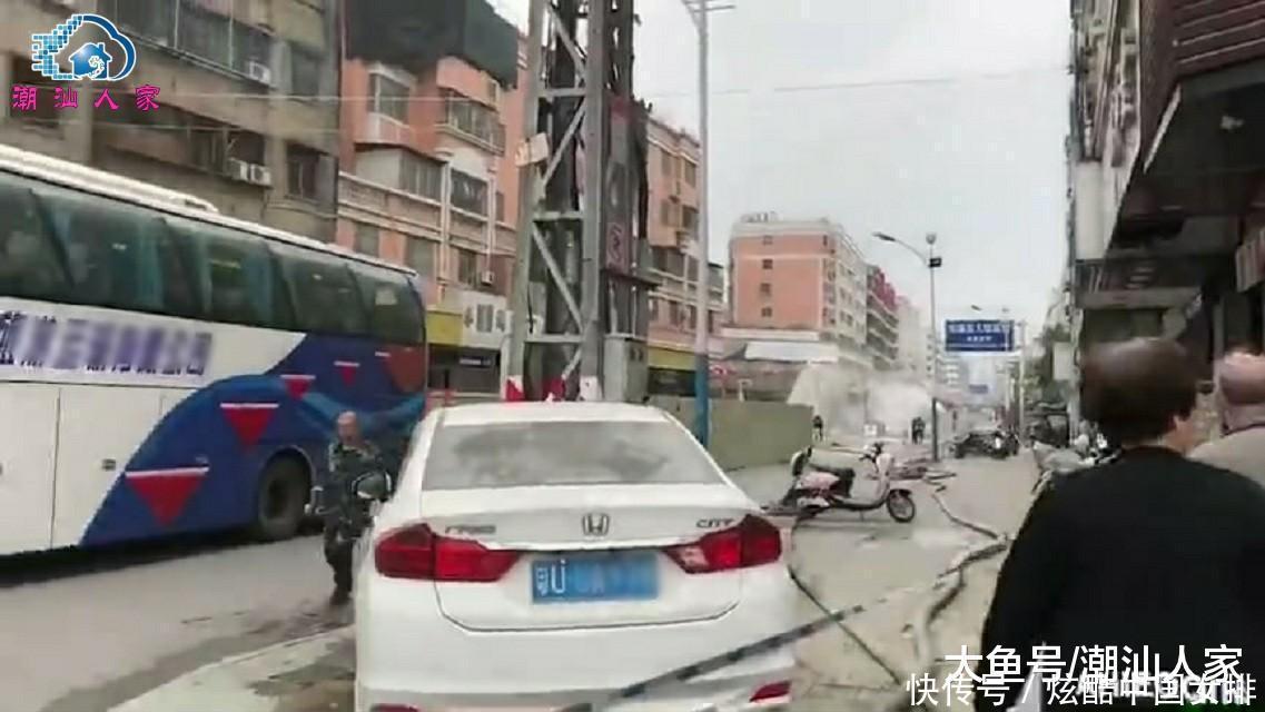 潮州發(fā)生一起天然氣管道泄漏事故, 現(xiàn)場(chǎng)拉起警戒線和疏散人群