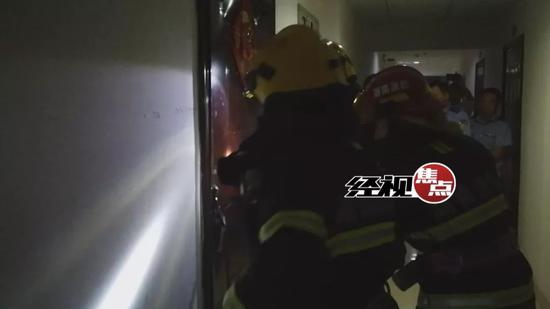 四分鐘后大門被破開,房間彌漫大量燃氣,消防隊員丁煥章立即沖了進去,他在廚房找到了被困的女業(yè)主。