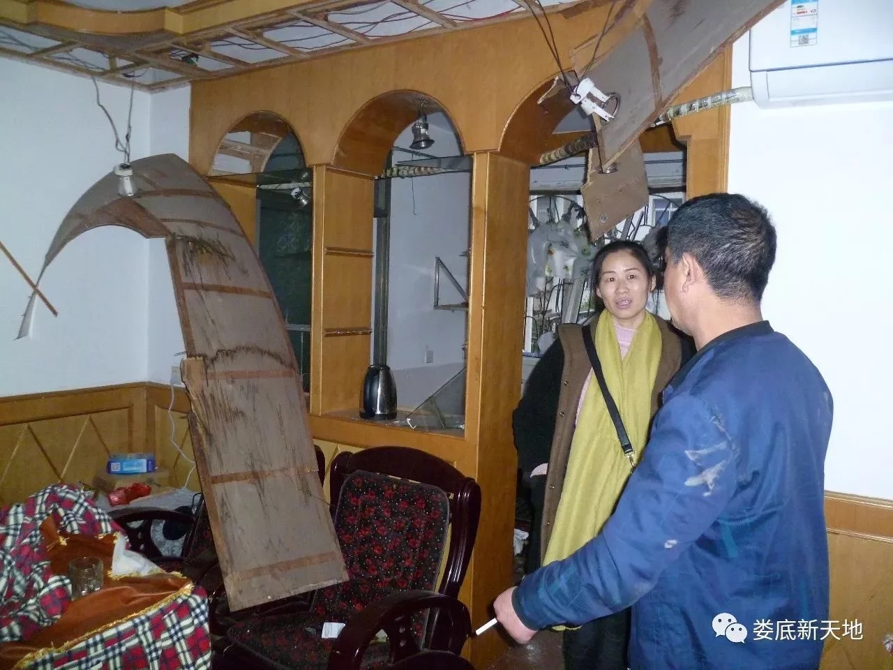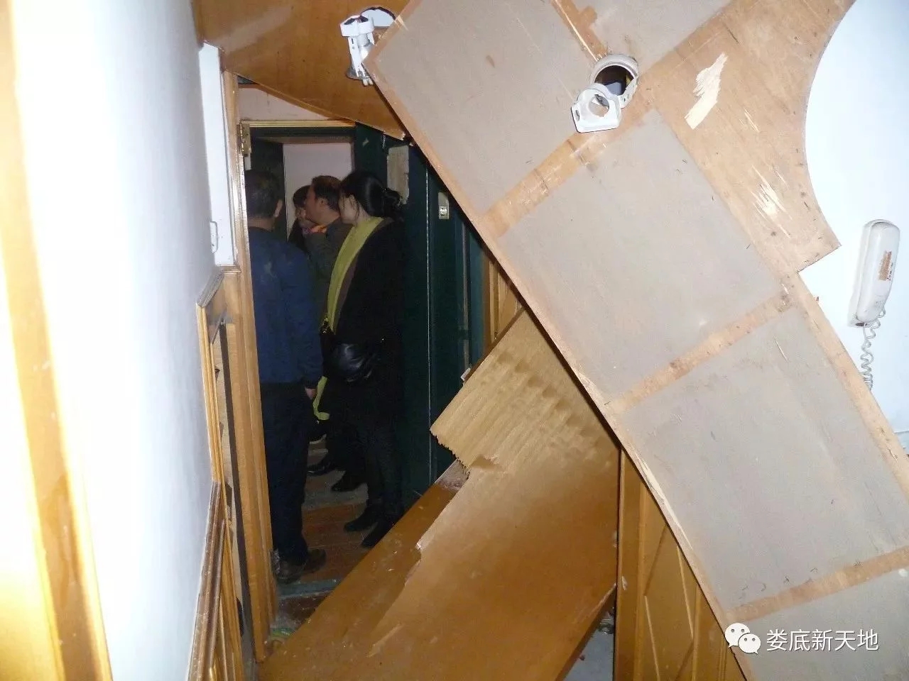 下午6時(shí),筆者走進(jìn)這套位于仙人閣的三室兩廳居室。只見(jiàn)防盜門活脫脫地被強(qiáng)大的氣浪沖開,里層的木門碎裂倒掉,客廳的天花板上也有好幾塊被毀。三個(gè)臥室、陽(yáng)臺(tái)、廚房的玻璃全部被震碎,碎玻璃撒了一地,滿地狼藉。臥室的柜子也被沖倒。