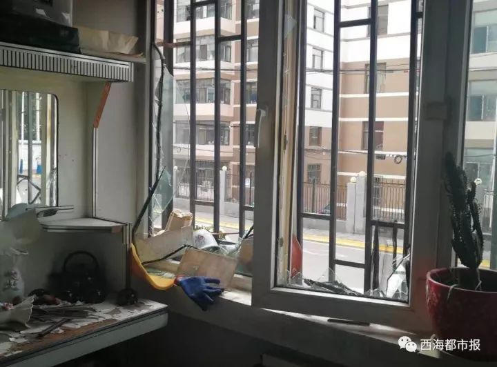 9時(shí)30分許,記者趕到事發(fā)小區(qū),門(mén)口停著一輛中油燃?xì)夤镜淖鳂I(yè)車。爆燃的是一樓的一家住戶,門(mén)口有很多碎玻璃,墻邊的雨水管被炸裂掉在地上。幾名民警正在調(diào)查。